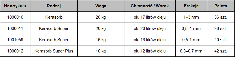 Dostępne warianty Sorbentu KERASORB