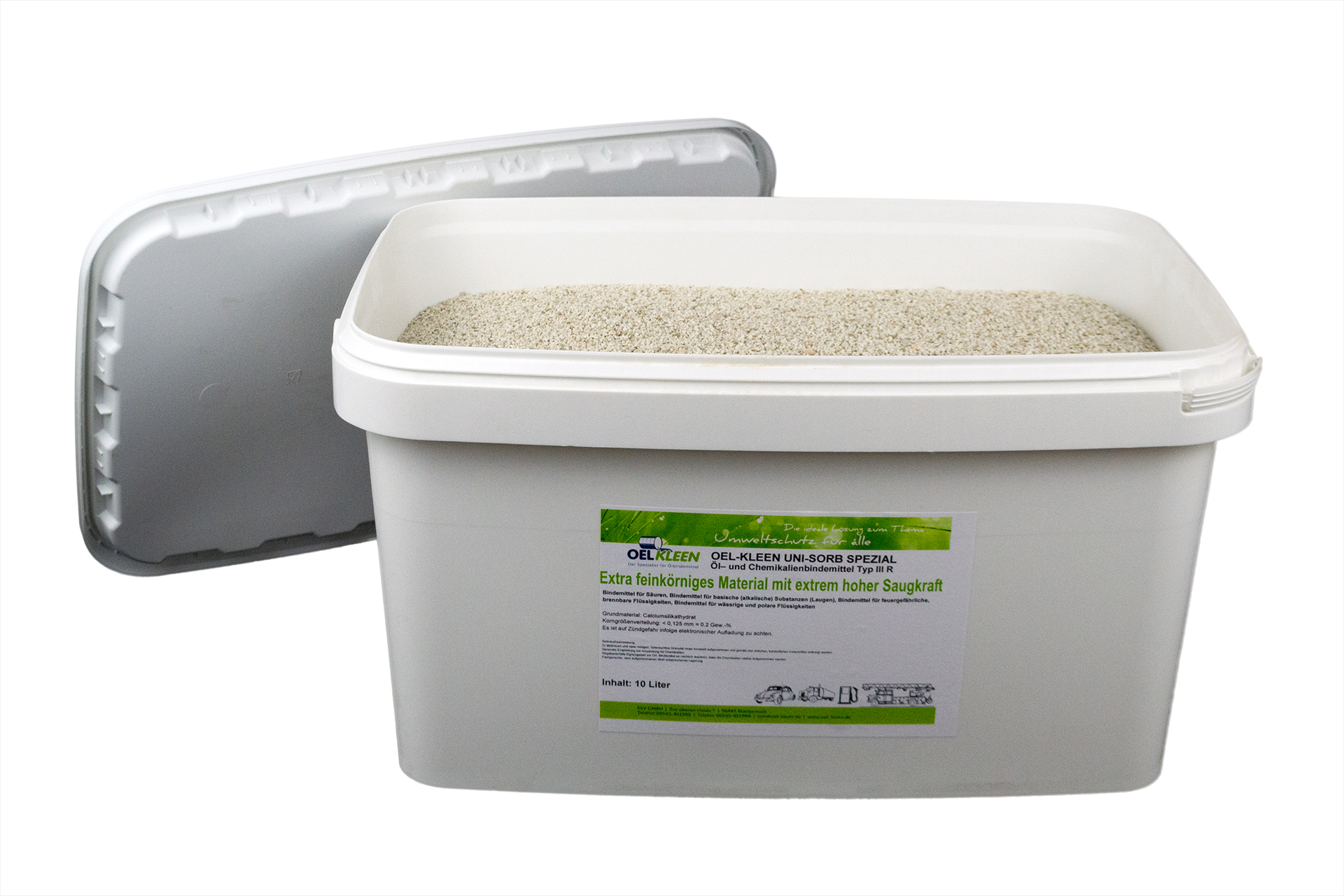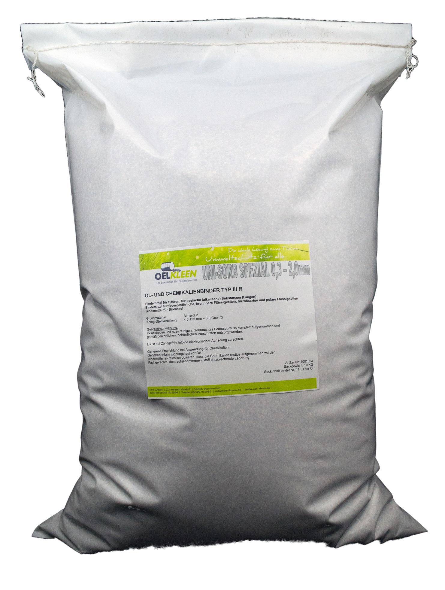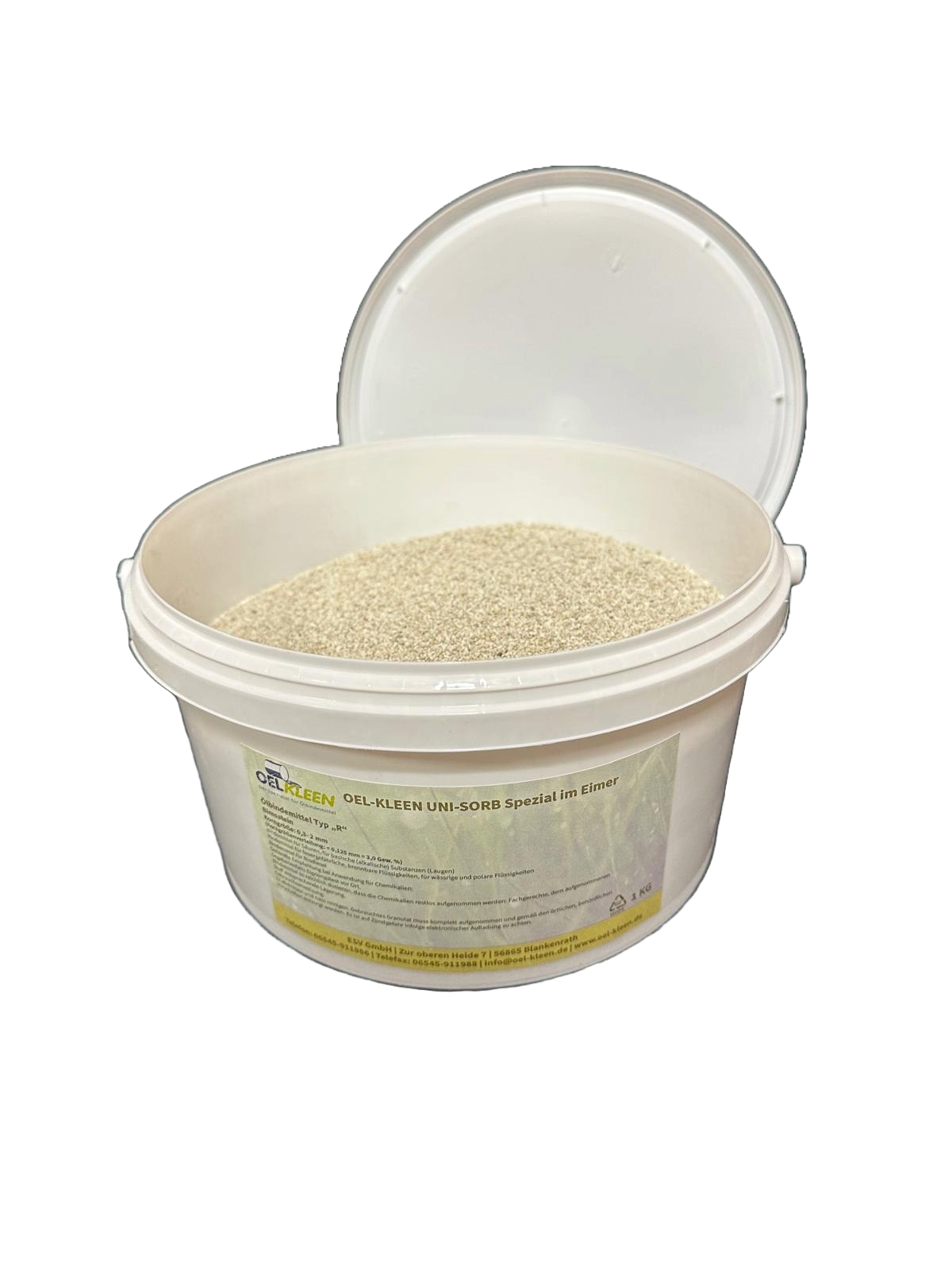 - Doczyszczanie: Powierzchnie silnie zaolejone należy najpierw zmiękczyć odpowiednim środkiem czyszczącym, a następnie posypać UNI-SORB-em.