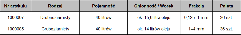 ◦ Wariant gruby: 1 kg wiąże ok. 0,88 L oleju.