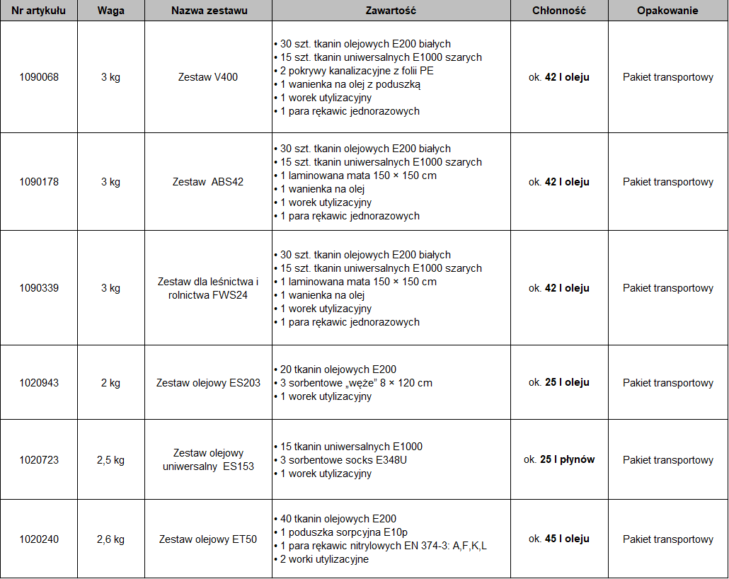 Zestawy awaryjne OEL-KLEEN ES 203